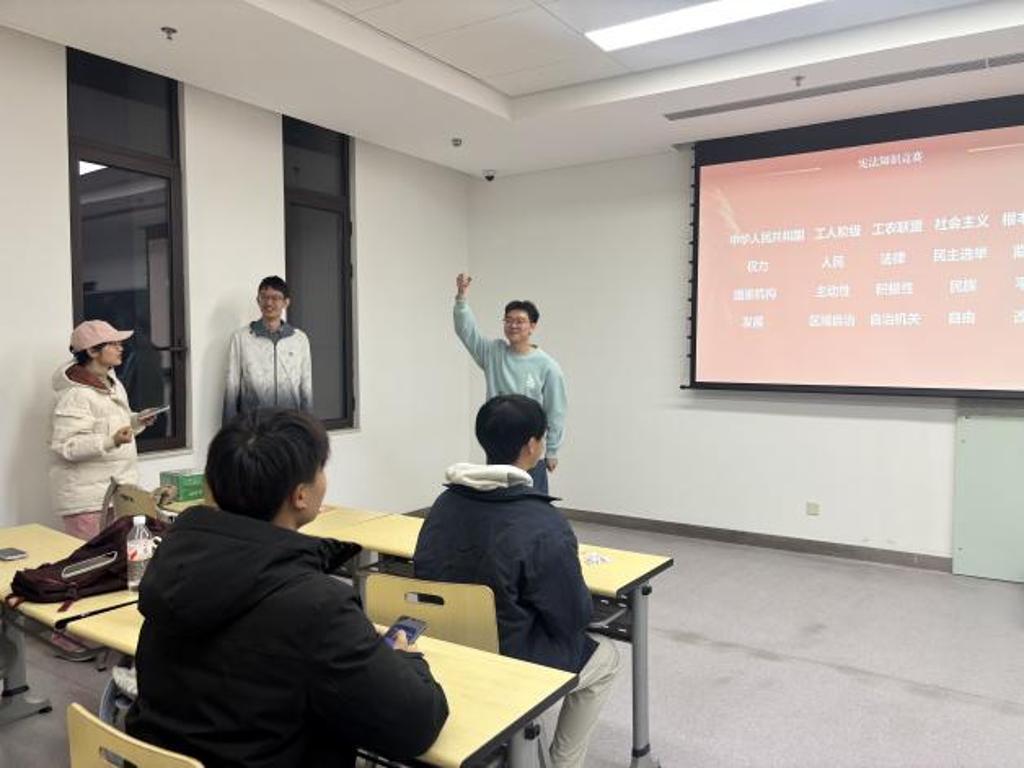 为发挥党员的先锋模范作用,引导党员同志进一步学深悟透习近平法治思想,本次活动特别设置了党员研讨交流环节。党支书贾梦婷组织支部党员同学结合自身学习体会,围绕“宪法与国家治理现代化”“青年如何在法治建设中担当作为”等议题展开深入讨论。
