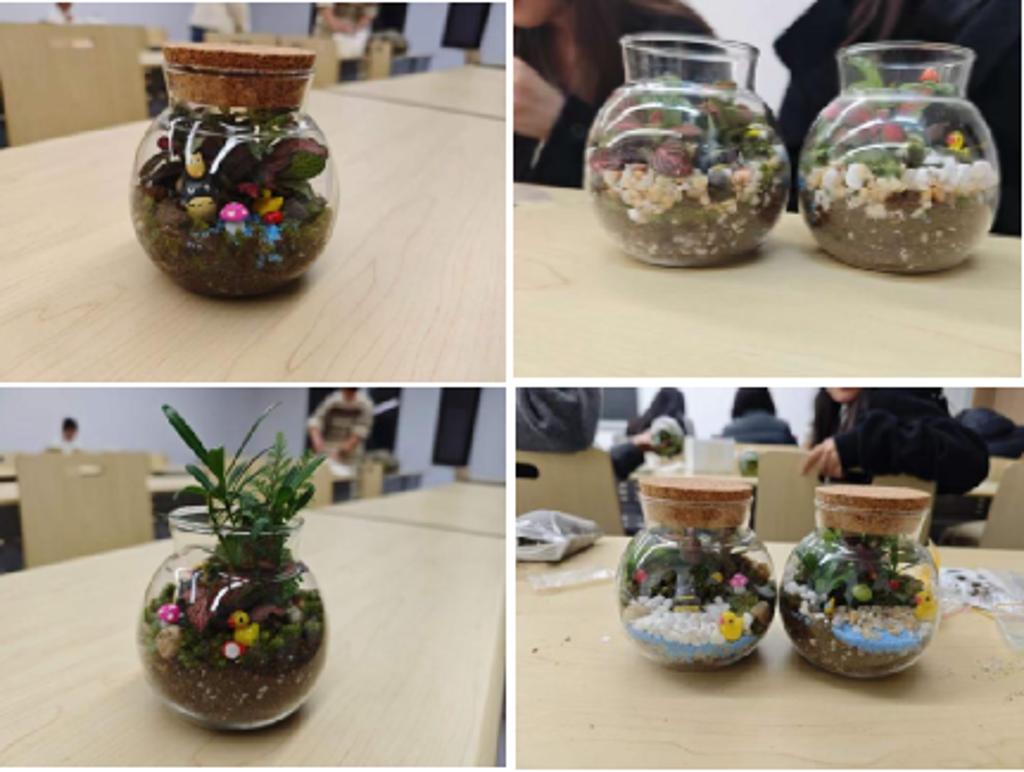 2025级硕士研究生李博同学表示:“这是我第一次尝试微景观制作,从填土到造景,每一步都充满了新鲜感。看着空瓶子慢慢变成充满生机的小森林,满满的成就感油然而生,也让我对自然与手工创作有了更深的热爱。”