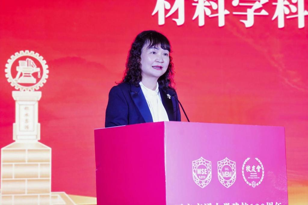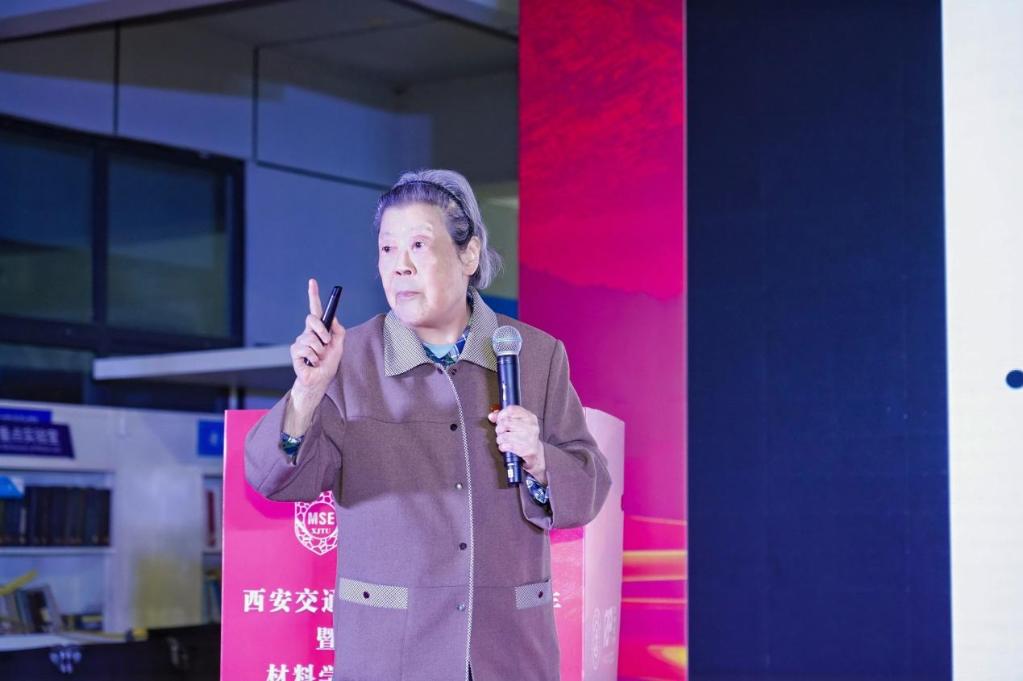 交大最美西迁人胡奈赛教授以“一堂材料课”的生动形式,回顾了交大西迁和材料学科建设的历程,讲述了深厚的爱国主义精神和交大人饮水思源的优良传统,“70年过去了,交通大学这棵大树已在西北深深扎下根来,在一代代交大人的奋斗中,枝繁叶茂,硕果累累。”她勉励全体交大材料人要传承弘扬西迁精神,成为新时代的奋斗者,争做西迁精神新传人,抓住时代赋予我们的历史机遇,担起民族复兴大业的责任,创造更多更好的、能够留下历史印记的新贡献,努力把西安交大建设成为中国特色、世界一流大学。