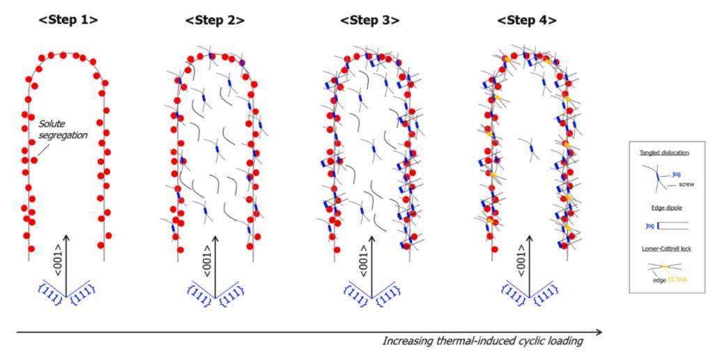 图2 3D打印金属中位错胞的形成与演化示意图