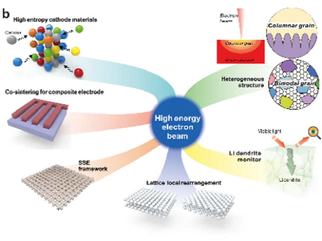 图4 高能束驱动的全固态电池材料非平衡多尺度结构调控与功能集成示意图。