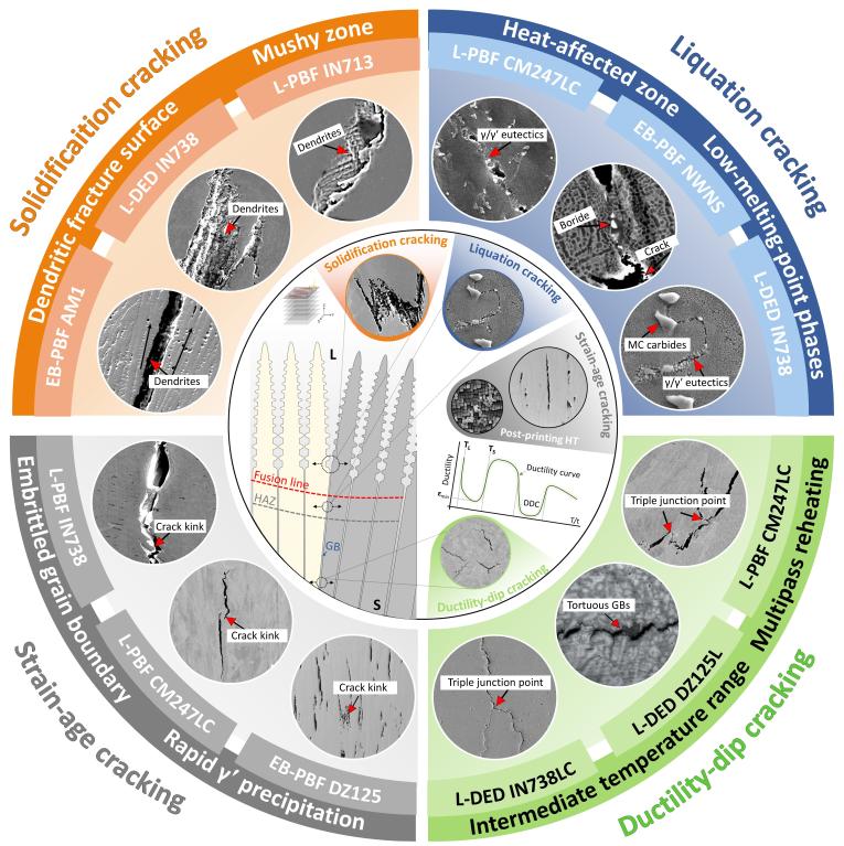 图1 增材制造镍基高温合金中的四种开裂机制