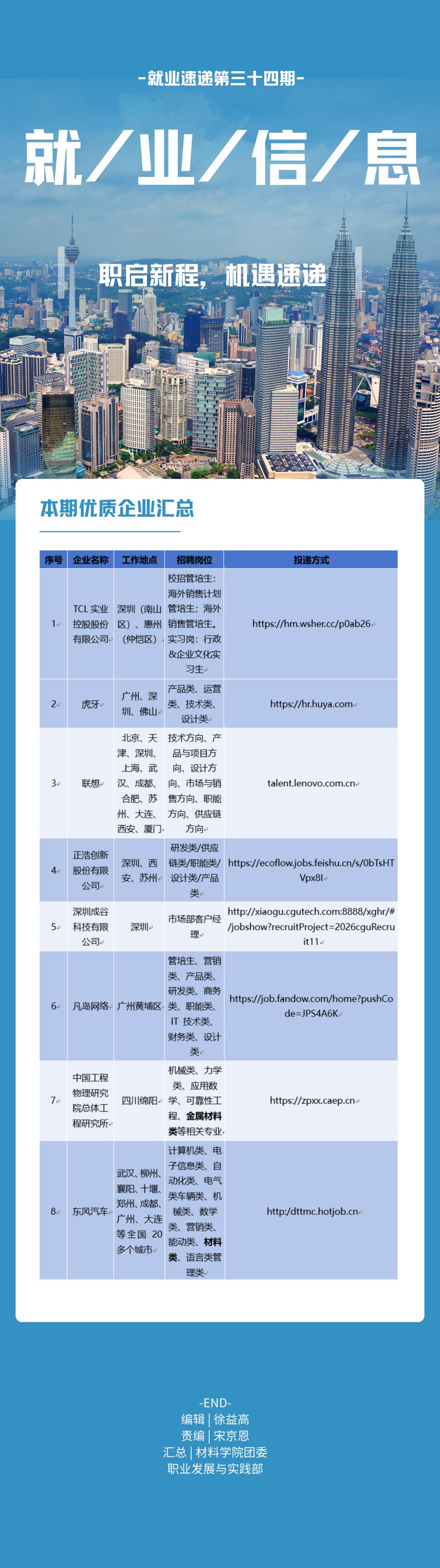 下一条:材料学院2026届研究生就业速递第三十三期就业信息